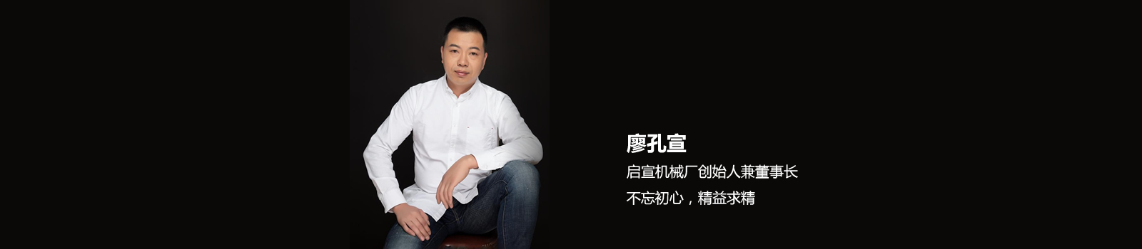 • 廖孔宣-瑞安市啟宣機(jī)械有限公司創(chuàng)始人兼董事長(zhǎng)。 1989年在溫州梧田撕裂膜廠做工,2005年自己創(chuàng)辦了鵬博機(jī)械廠,誠(chéng)信經(jīng)營(yíng),不忘初心,精益求精。之后機(jī)械廠正式改名瑞安市啟宣機(jī)械有限公司。